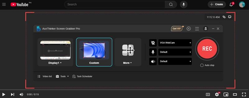 The Custom Mode is best when you need to pay attention to a certain aspect of your screen, such as a Vimeo video or a specific app window. Select the area, place it anywhere on top of the content you want to capture, and hit REC to start recording only that area. This process assists in removing distractions and conserves storage space.